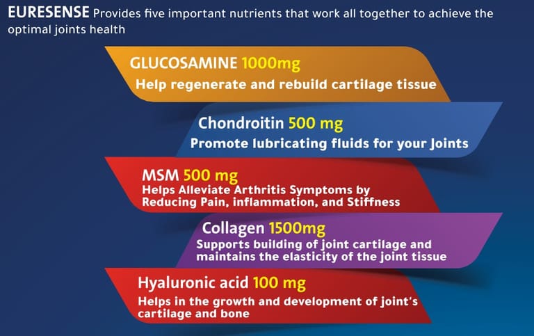 Euresense is an advanced dietary supplement specially designed to support joint health, flexibility, and natural mobility. It contains five active ingredients that work in harmony to nourish cartilage, strengthen connective tissues, and improve joint comfort and movement.